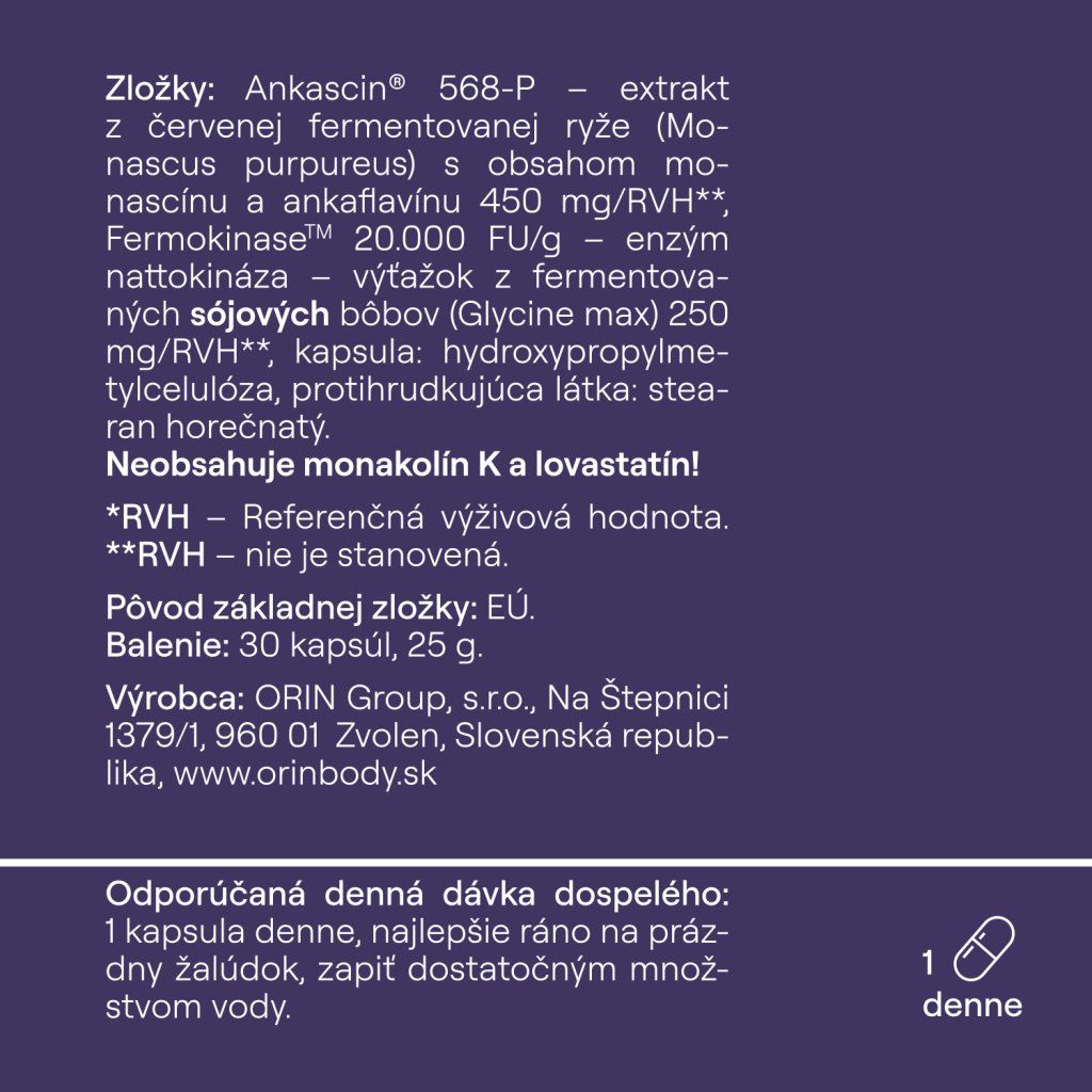 Ankascin® 568-P je unikátní složka ověřená klinickým výzkumem. Tato složka neobsahuje statiny - lovastatin a monakolin K a jiné monakoliny, které se používají v lécích na snížení cholesterolu, ale v nich mohou mít i vedlejší účinky.