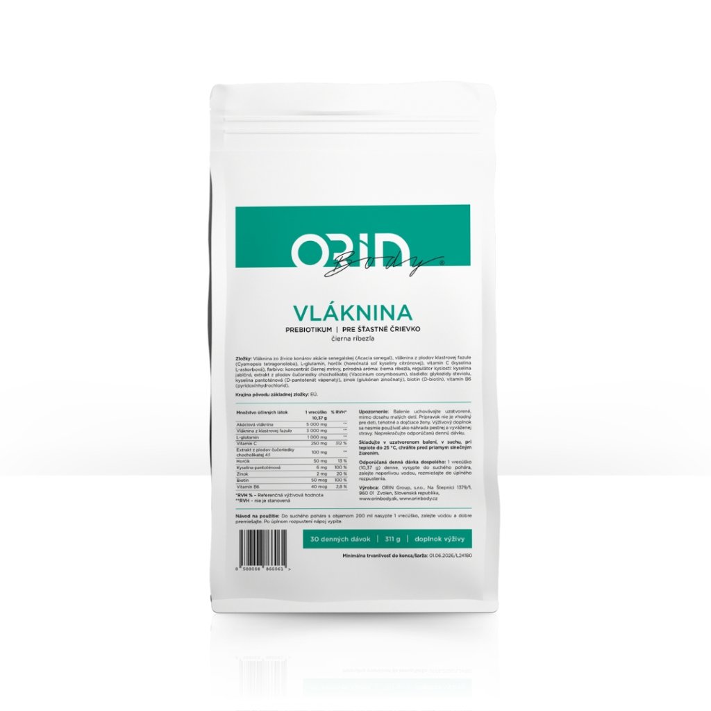 ORIN FIBER obsahuje dva druhy vláknin – akáciovou a vlákninu z clusterové fazole.
