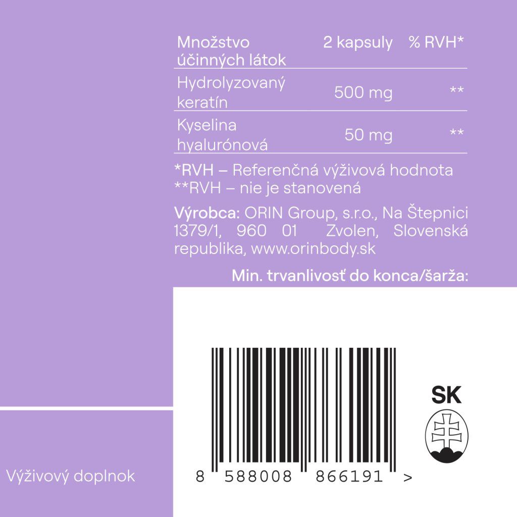 ORIN KERATIN obsahuje kyselinu hyaluronovou